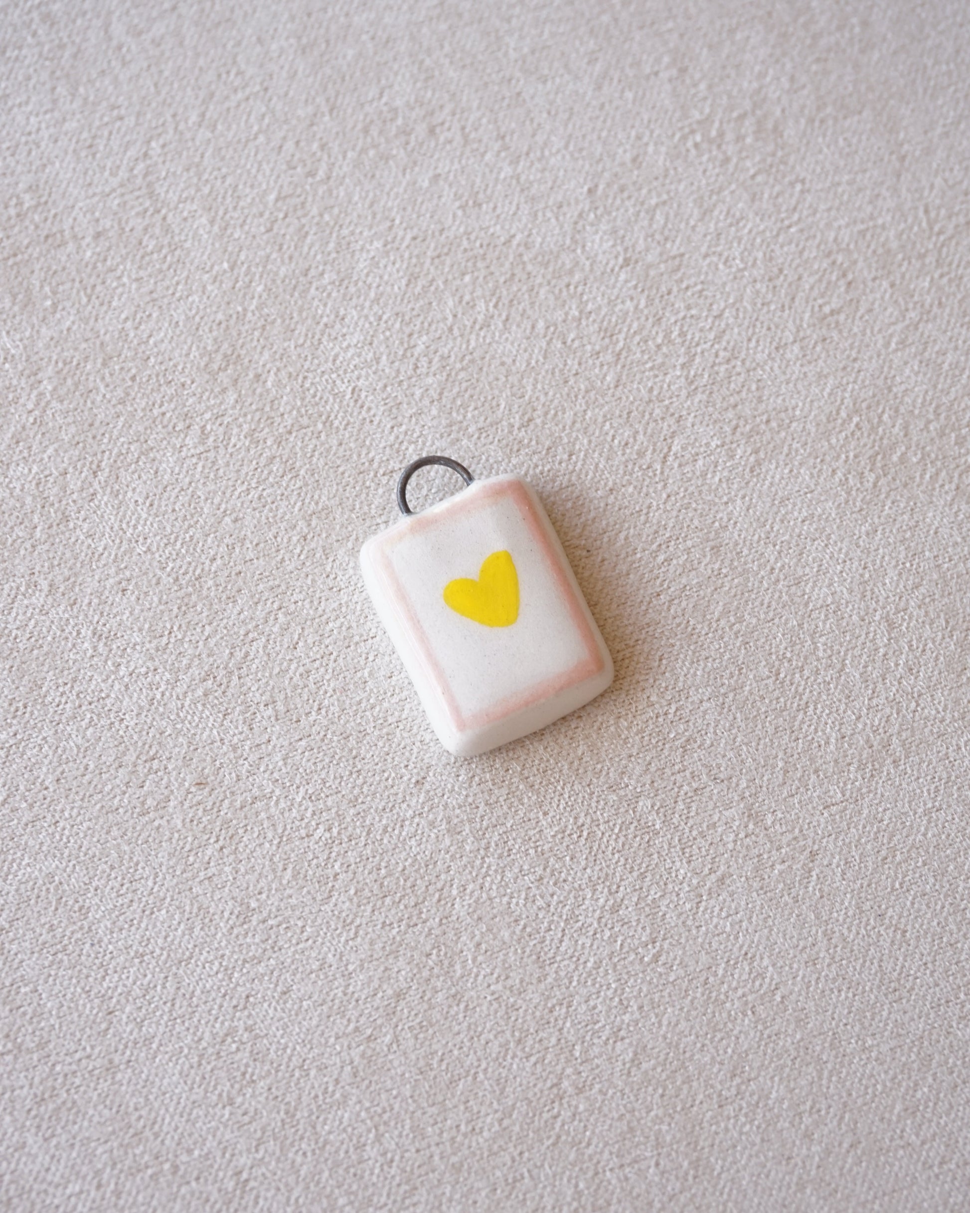 Ciondolo rettangolare cuore giallo e contorno rosa–PREORDINE