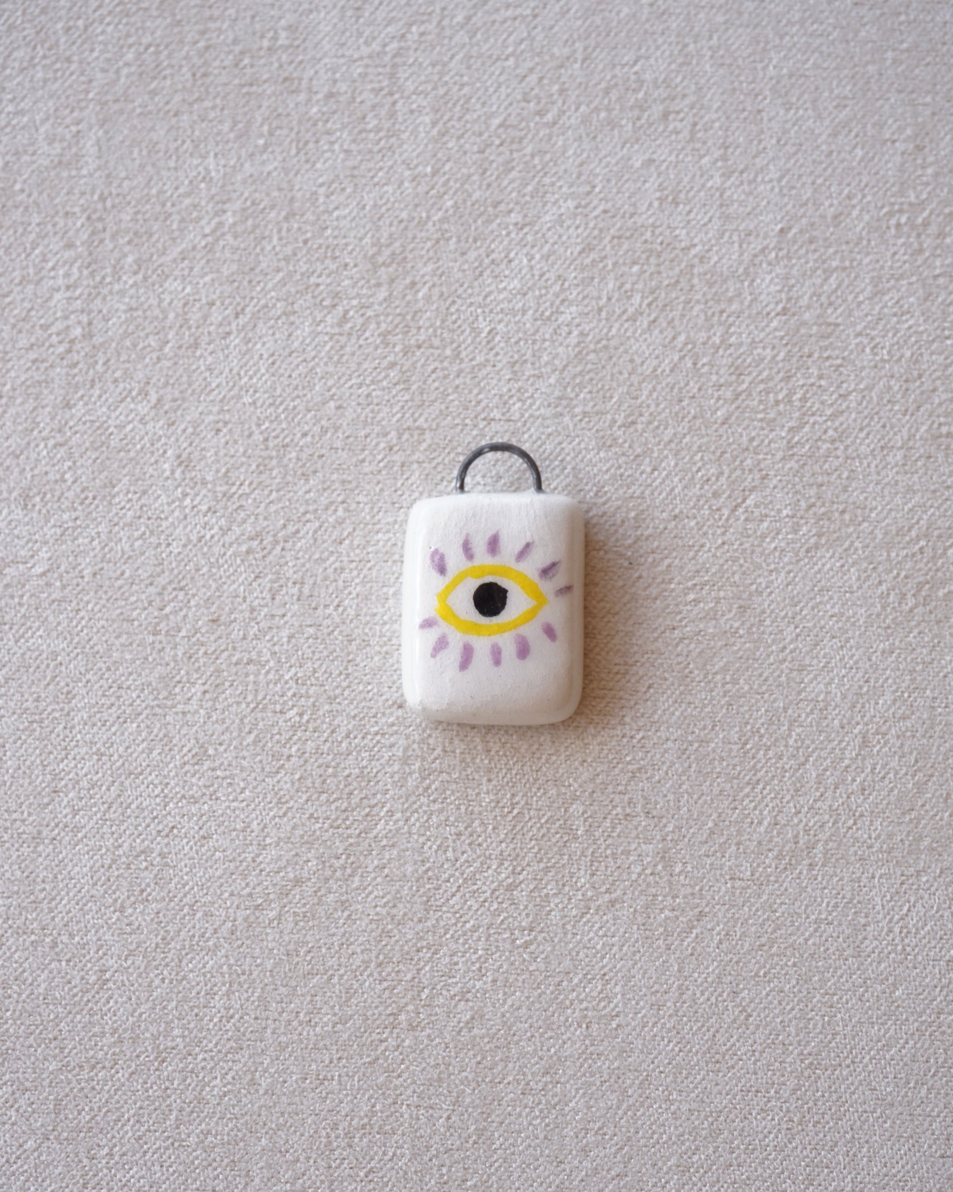 Ciondolo rettangolare occhio giallo e viola–PREORDINE