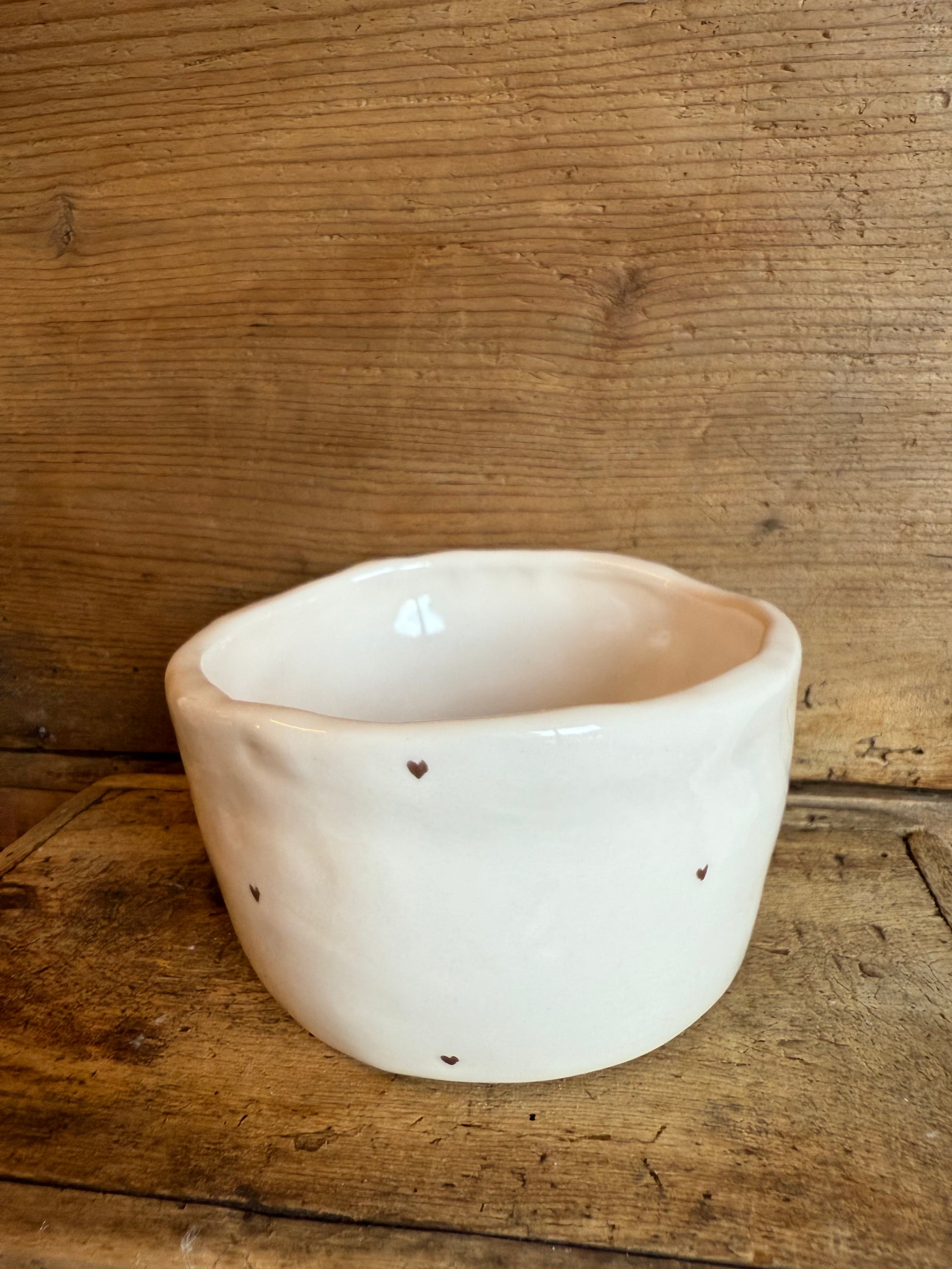 Piccola ciotola in ceramica bianca, ideale per la colazione, uno spuntino leggero o un dessert.